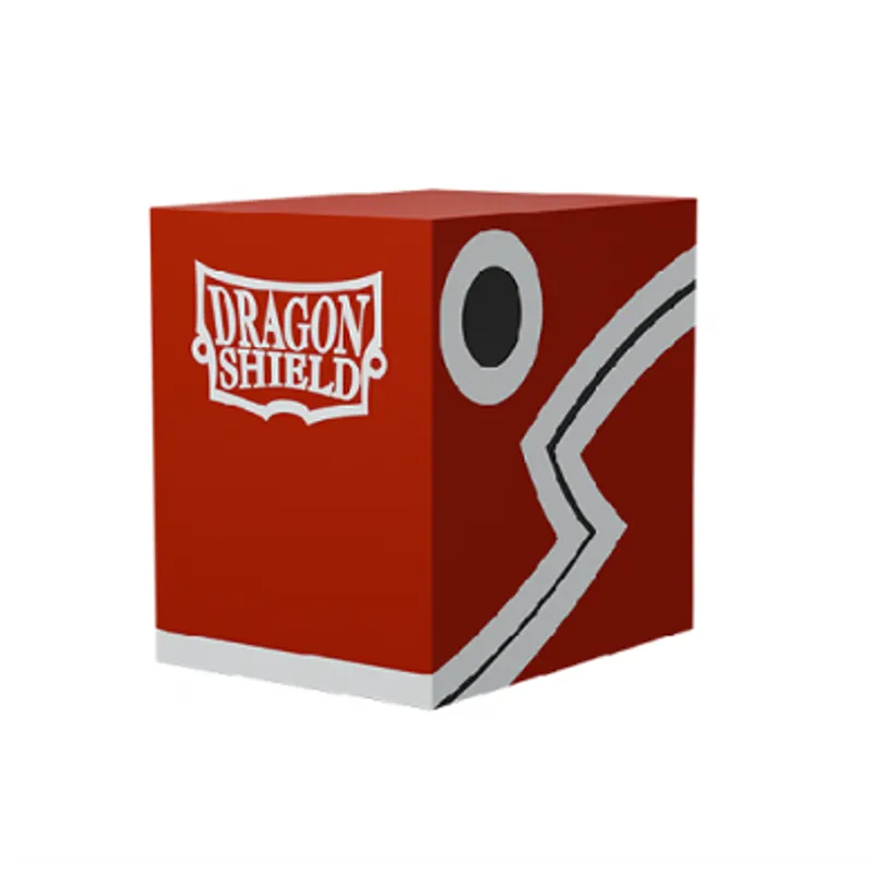 Dragon Shield Dobule Shell Red/Black čvrsta kutijica sa dva sloja zaštite za čuvanje do 100+ karata (Pokemon, Yu Gi Oh, MTG ili bilo koji TCG sa standardnom veličinom karata) zaštićenih slivovima. Poklopac se obmotava oko kutije radi sigurnijeg zatvaranja ili se može potpuno rasklopiti radi lakšeg pristupa kartama. Svaka Double Shell kutijica sadrži separator za karte i na vrhu ima polje za zapisivanje.