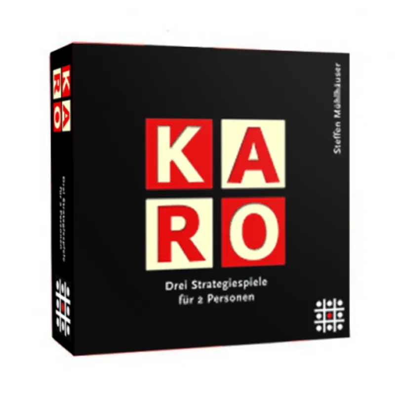 Karo je edukativna igra strateškog karaktera za dva igrača. Pomalo neuobičajena, igra vam daje dosta mogućnosti za igru jer u sebi sadrži tri igre. Tačnije, sa njenim komponentama, mozete je igrati na tri načina koristeći iste delove. Igra sadrži 24 crne pločice i po 8 crnih i cvenih figura.