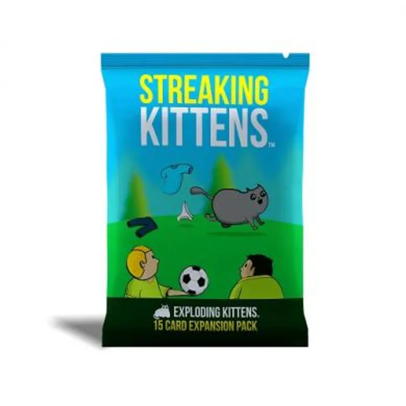 Exploding Kittens Streaking Kittens (na srpskom jeziku) je druga ekspanzija za društvenu igru Exploding Kittens koja sadrži 15 potpuno novih karata koji će igranje učiniti potpuno drugačijim! Sa ovom ekspanzijom dobićete mogućnost da eksplodirajuće mače držite u svojoj ruci i tako napravite klopku Vašim protivnicima u čijim će rukama eksplodirati ako pokušaju da ga uzmu od Vas!