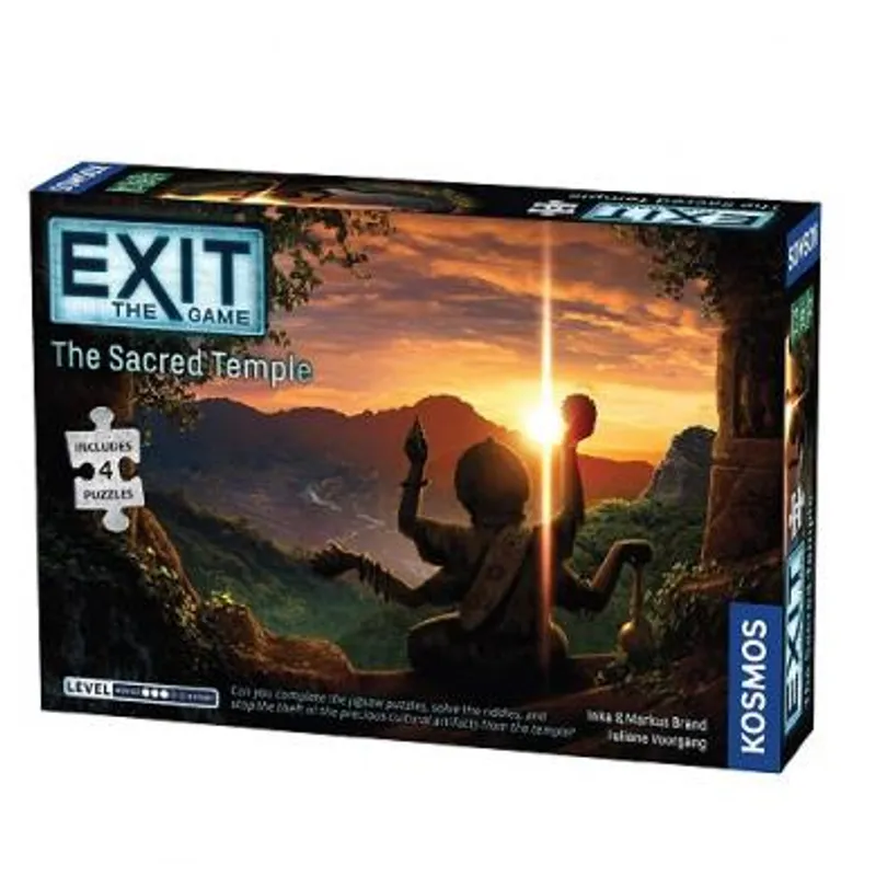 Društvena igra Exit The Sacred Temple pružiće Vam zabavu kroz razne zagonetke koje morate da rešite kako bi pobedili. U ovom delu svaka zagonteka koju rešite uvodi Vas i Vaše saigrače dublje u nepristupačnu prašumu u potrazi za Svetim hramom. Pomozite profesoru i pronađite izgubljeni hram, otkrijte šta se u njemu krije, pre nego što to učine lovci na blago!