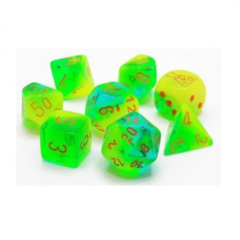 Chessex Gemini Luminary Plasma Green- Teal with Orange 7-Dice Set