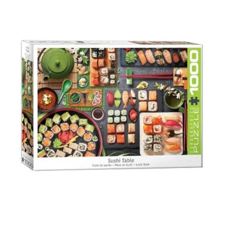 Puzzle Sushi Table je slagalica od 1000 na kojoj je naslikan sto za suši, sa raznim varijanatama ovog delikatesa. Ukoliko ste ljubitelj japanske kuhinje i volite svežu ribu, a ujedno želite da se zabavite i testirate svoje veštine opažanja slažući puzle, ovo je prava slagalica za Vas!