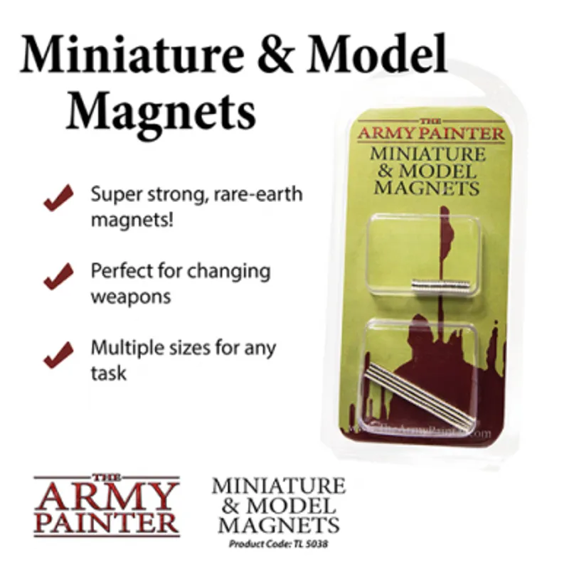 Miniature and Model Magnets su još jedan artikal koji će uskoro biti nezaobilazan, a razlog tome je što Vam daje neograničene mogućnosti primene. Zamislite da svojim minijaturama možete da menjate oružja, a da nema prepravke figure?! Zamislite da menjate podlogu na kojoj se figura nalazi i to za samo nekoliko sekundi. Magneti Vam upravo to omogućavaju... To su samo neke od mogućnosti, a primenu ograničava samo Vaša mašta. Prilikom upotrebe obavezno obeležite polove magneta da slučajno ne naprvite oružje koje "beži" od Vaše minijature.