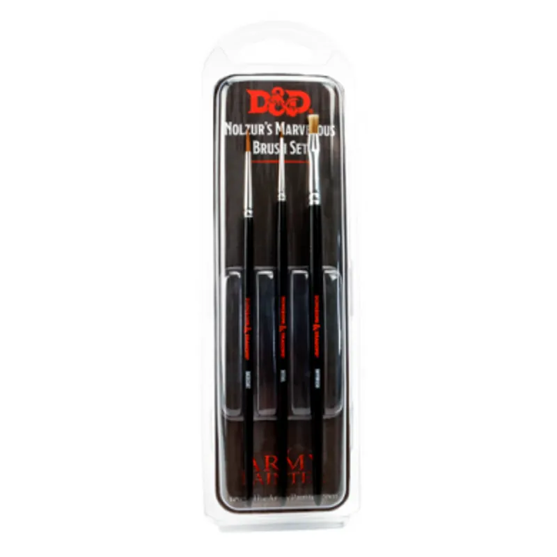 Nulzurs Marvelous Brush Set čine tri četkice za farbanje minijatura ili figurica iz društvenih igara. Basecoat brush, Detail brush, Drybrush... Basecoat brush služi za osnovno premazivanje figurica i savršena je za nanošenje boja na prava mesta a da ne morate da potopite figuru u boju. Detail brush se koristi za dodavanje sitnih detalja na minijature kao što su oči, tetovaže, kopče za kaiševe itd.. Drybrush se koristi za isticanje boja na izdignutim površinama a da pri tome boje ne dospeju u dublje delove figurice. Efekat koji se dobija sa tim je zapanjujuć, ako se to naravno uradi kako treba.