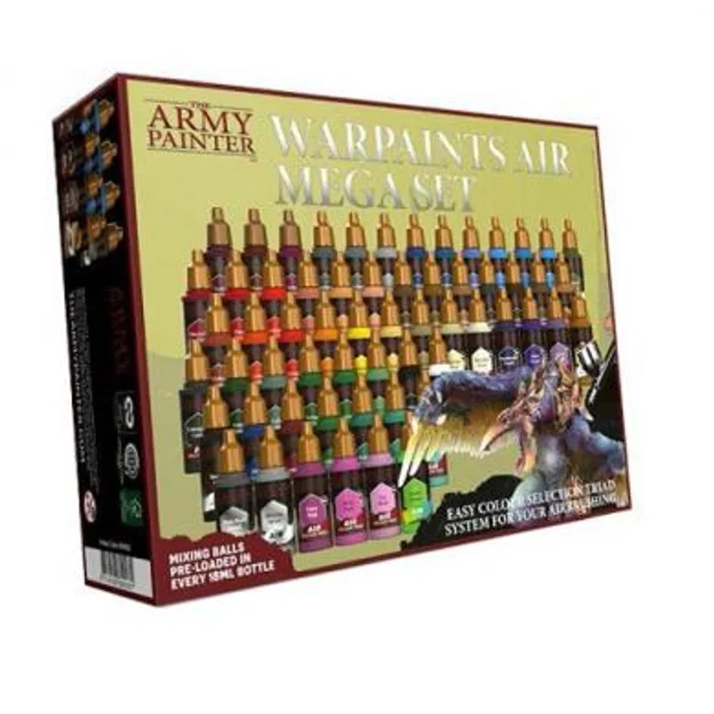 Warpaints Air Mega Set je fantastičan način da započnete ili poboljšate svoju kolekciju airbrush boja. Sadrži širok izbor boja; od oštrih osnovnih boja do svetlucavih metalik boja, čak i fluorescentnu nijansu. Sve nijanse su već pripremljene i spremne za korišćenje odmah po otvaranju. Warpaints Air boje su razvijene jednostavnim i inovativnim Triad sistemom - svaka boja ima odgovarajuću osnovnu i highlight nijansu. Ovo čini isticanje i senčanje dosta lakšim i bržim. Svaka boja u ovom setu sadrži i dve kuglice za mešanje u bočici!