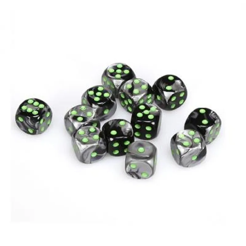 Chessex Gemini Black Grey with Green 16mm D6 (12 Dice)