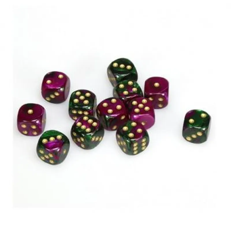 Chessex Gemini Green Purple with Gold 16mm D6 (12 Dice)