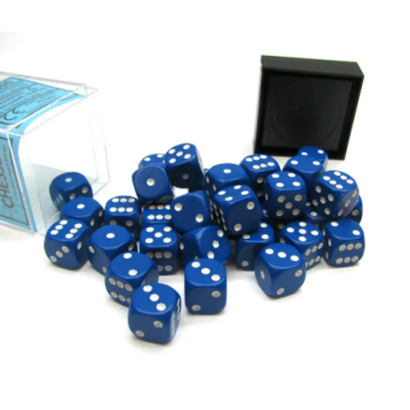 Chessex Opaque Blue with White 12mm D6 Dice Blocks (36 Dice)