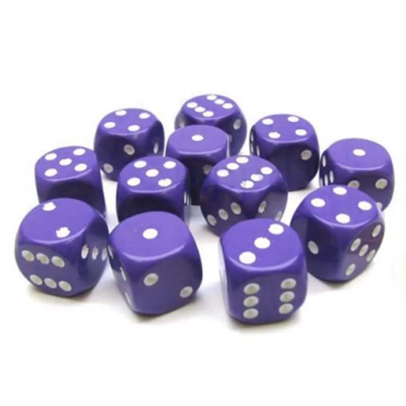Chessex Opaque Purple with White 16mm D6 Dice Block (12 Dice)