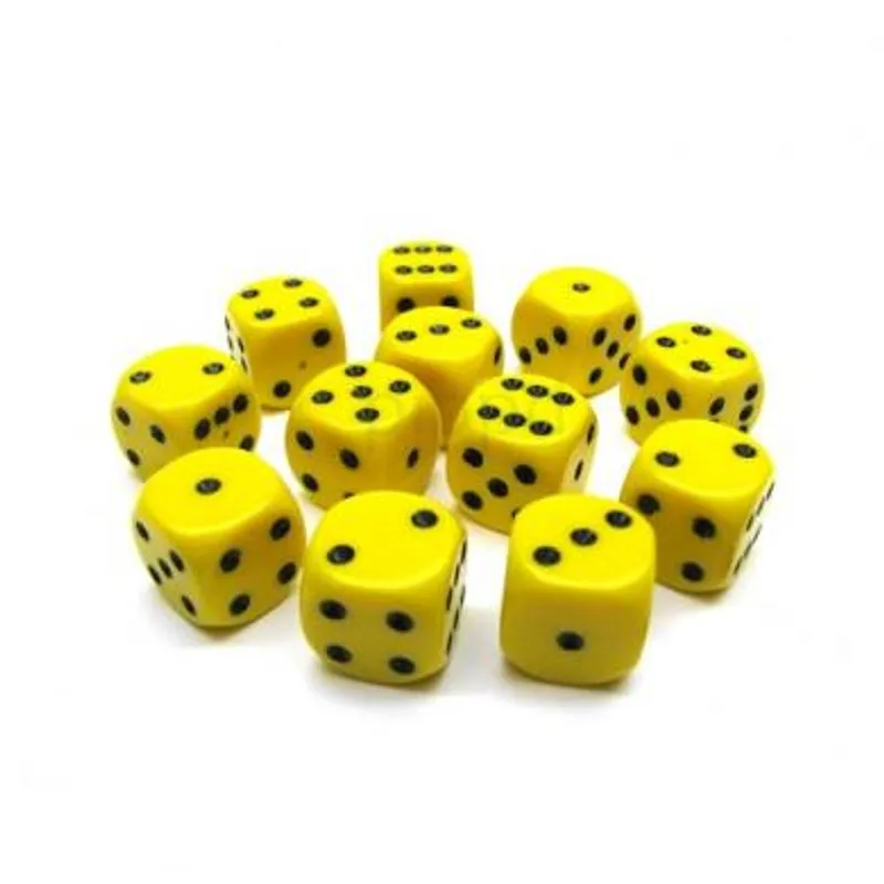 Chessex Opaque Yellow with Black 16mm D6 (12 Dice)