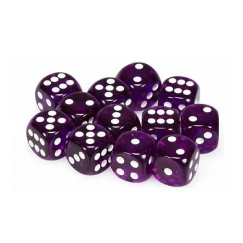 Chessex Translucent Purple with White 16mm D6 (12 Dice)