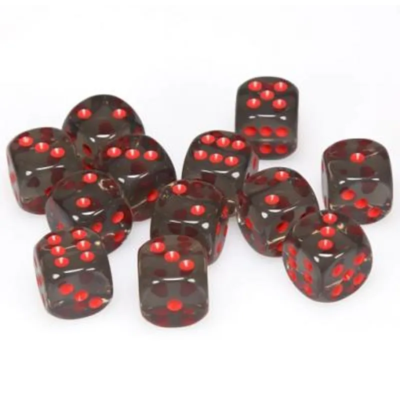 Chessex Translucent Smoke with Red 16mm D6 Dice Block (12 Dice)