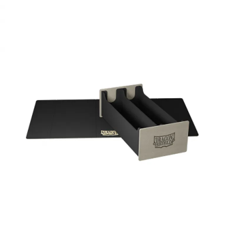 Dragon Shiel Magic Carpet Xl Grey/Black je kombinovana kutija za čuvanje i podloga za igru koja nudi jednostavan i elegantan način za skladištenje kartica. Odlikuju je čvrsta spoljašnost i unutrašnjost obložena satenom, u kombinaciji sa jakim magnetnim poklopcem za čuvanje karata na sigurnom. Magic Carpet se sastoji od dva odvojena elementa: podloga za igru i kutija za odlaganje karata.