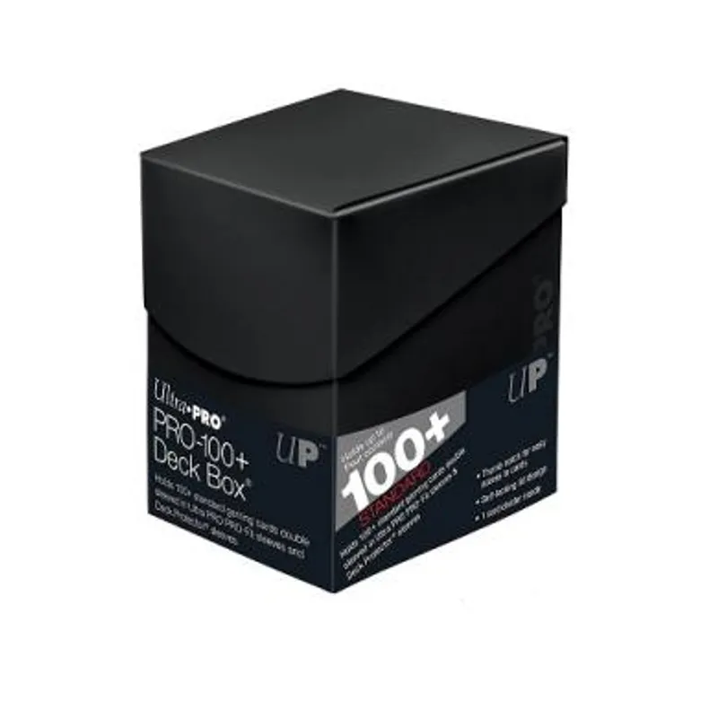 Kutijica Eclipse Jet Black PRO 100+ Deck Box će bezbedno da čuva do 110 karata (Pokemon, Yu Gi Oh, MTG ili bilo koji TCG sa standardnom veličinom karata) zaštićenih slivovima ili preko 150 karata bez slivova. Poklopac je dizajniran tako da se prilikom zatvaranja sam zaključa i time osigura bezbednost vaših karata od ispadanja ako se kutijica okrene naopako. Eclipse seriju deck boxeva kao i albuma i slivova odlikuje i crna unutrašnjost koja dosta doprinosi estetici same kutijice.