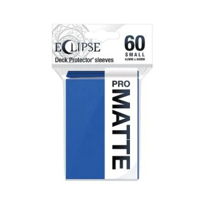 Ultra pro Eclipse Matte Small Size Pacific Blue Deck Protectors zaštite za karte prvenstveno namenjene za igru <strong>Yu-Gi-Oh! TCG.</strong> Ove zaštite odlikuje matirani prozirni deo, tako da karta koja je u tom slivu nema presijavanja na svetlosti ili je to presijavanje minimalno a druga bitna odlika je crna boja u samoj unutrasnjosti sliva. Dok u običnim Matte slivovima iza karte vidite i boju sliva koji koristite u Eclipse slivovima to je uvek crna boja. Broj komada u svakom pakovanju je 60.