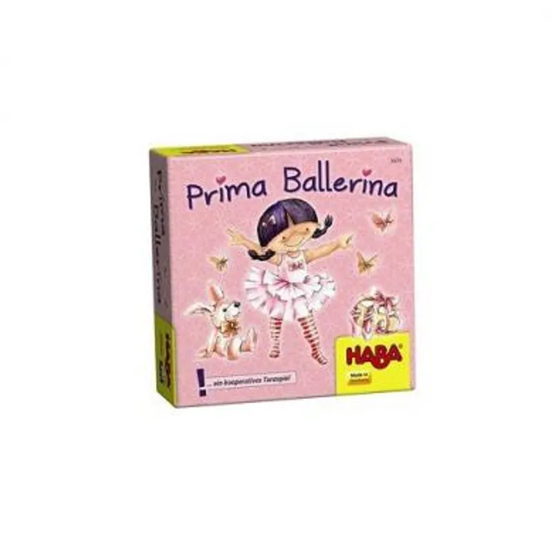 Društvena igra Prima Ballerina predstavlja kooperativnu edukativnu igru za decu od 4-8 godina. Pored toga što ima jako jednostavna pravila, ova igra je odlična za simultano vežbanje koordinacije pokreta i memorije kod deteta. Kako biste započeli igru, poređajte na sto jedan red roze karata, a zatim ispod njega red plavih karata licem na dole (tako da budu prikazane boje). U svom potezu, igrač stavlja figuricu iznad prve kolone, odnosno roze i plave karte koje treba okrenuti. Roze karta predstavlja poziciju ruku, dok plava predstavlja poziciju nogu. Kada ih okrene, igrač će morati da izvede baletsku figuru koja mu je zadata. Sledeći igrač koji je na potezu okreće licem na dole karte sa pokretima koje je prethodni igrač izveo, okreće novi par karata, a potom prvo izvodi figuru prethodnog igrača, pa onda svoju. Na kraju pokušajte zajedno da otplešete nešto lepo i graciozno, ponavljajući sve pokrete koje ste imali! I ne zaboravite da bodrite svoje saigrače aplauzima.
