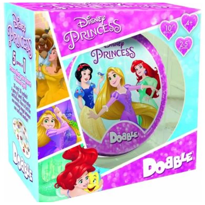 Magični svet Diznijevih princeza upravo se pridružio ovoj neverovatno zabavnoj društvenoj igri! Unapredite svoje vizuelne veštine i sposobnost opažanja uz ovu verziju Dobble-a. Snežana i sedam patuljaka, Lepotica i Zver, Mala sirena i mnoge druge princeze učiniće igru još zanimljivijom.