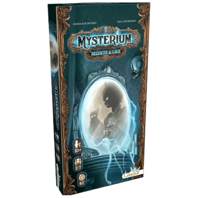 Društvena igra Mysterium doživela je veliki uspeh a sa velikim uspehom stižu i ekspanzije… Ekspanzija za društvenu igru Mysterium Secrets & Lies sastoji se od šest novih likova, šest novih lokacija, šest novih predmeta i 42 karte vizija kao i 18 karata sa pričama. Ova poslednja grupa karata može zameniti karte predmeta u igri, pri čemu svaka karta predstavlja jedan od načina na koji je duh umro. Sada, umesto da pokušava da natera svakog istražitelja da identifikuje neki predmet - posebnu stavku koja ne bi imala mnogo nijansi - duh umesto toga mora da koristi karte snova da prenese priču o svojoj smrti, nešto daleko izazovnije. U igri je uvek bilo najlakše pronaći predmet sa kojim je ubistvo izvršeno ali sada ni to neće biti lako. Ako vam se dopala društvena igra Mysterium, logičan nastavak je baš Mysterium Secrets & Lies.