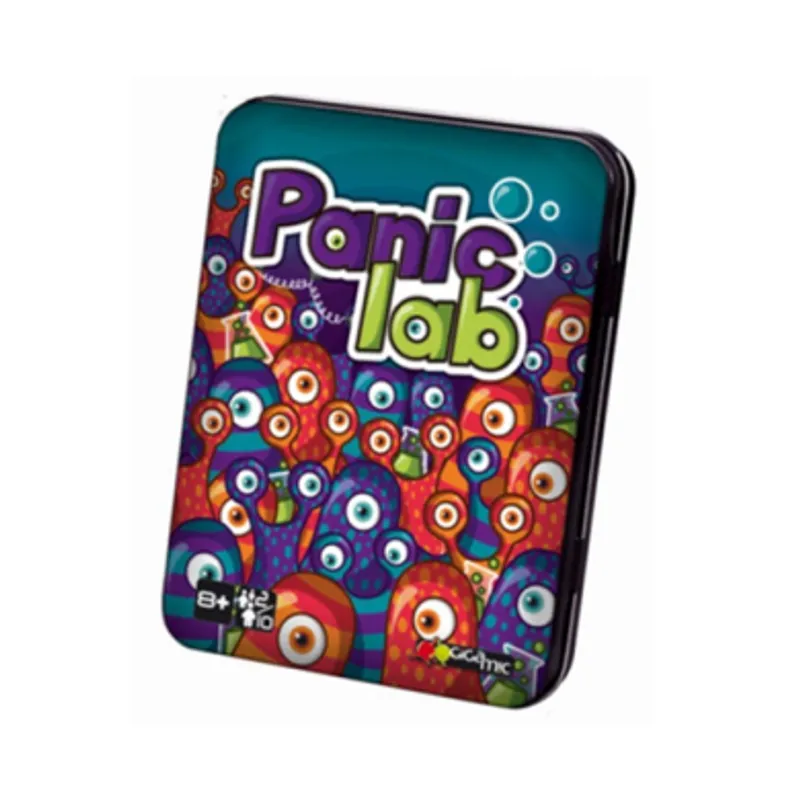 PANIC LAB je edukativna igra opažanja i brzog reagovanja. Amebe su pobegle iz laboratorije i razmigoljile su se na sve strane. Uhvatite ih brzo! Svi igraju zajedno i u isto vreme igraju. Igrač koji je na potezu baca 4 jedinstvene kockice da bi se utvrdilo iz koje labaratorije je ameba pobegla, u kom pravcu i kojeg je oblika, šare i boje. Prvi igrač koji nađe amebu pobeđuje u toj rundi i dobija poen. Ali pazite, amebe su lukave i mogu se sakriti u vazdušnim cevima ili čak mutirati. Treba Vam hladna glava, oštra moć zapažanja i brza ruka da vratite Vašu labaratoriju pod kontrolu.