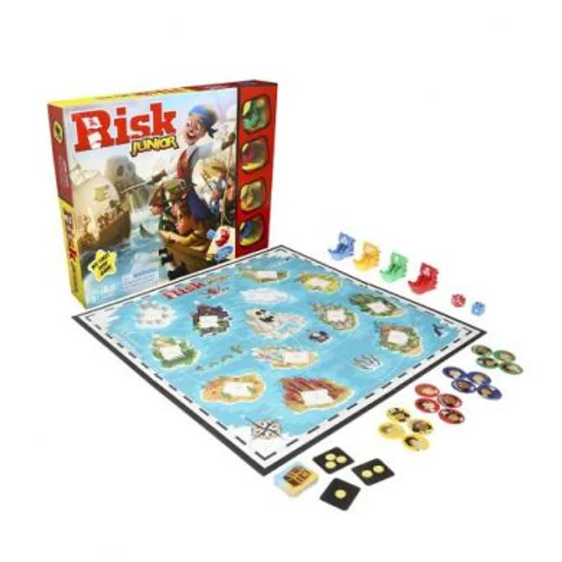 Društvena igra Risk Junior je jednostavna za igranje, sa zanimljivom piratskom tematikom i šarenolikim dizajnom. Igrači pomeraju svoje brodiće po tabli za igru u potrazi za zakopanim blagom, i ujedno se bore za kontrolu nad ostrvima, sa ciljem da prikupe najviše blaga. Igra ne zahteva čitanje pravila, brzo se postavlja i može se igrati u manje od 30 minuta. Okupite mlađe članove porodice uz ovo izdanje klasične strateške borbene igre.