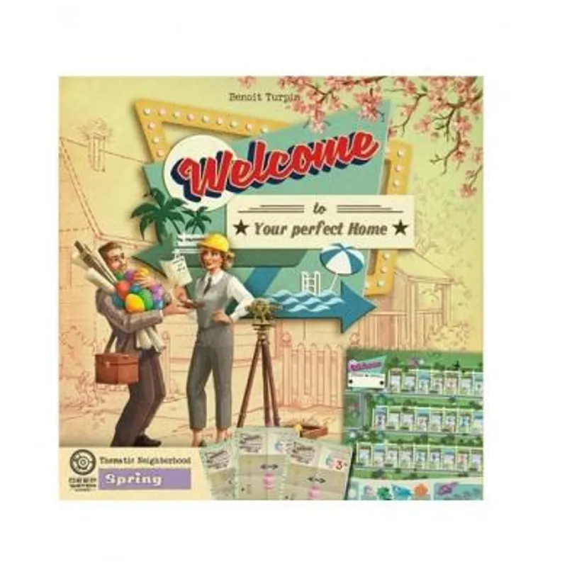 Spring Welcome to Neighbourhood ekspanzija za Welcome To... društvenu igru sadrži dodatne listove komšiluka koji služe kao dopuna za osnovnu igru. Takođe uz ovu ekspanziju dobijate i nove načine za postizanje poena, uključujući 3 nova plana grada i 50 potpuno novih listova sa drugačijom mehanikom.