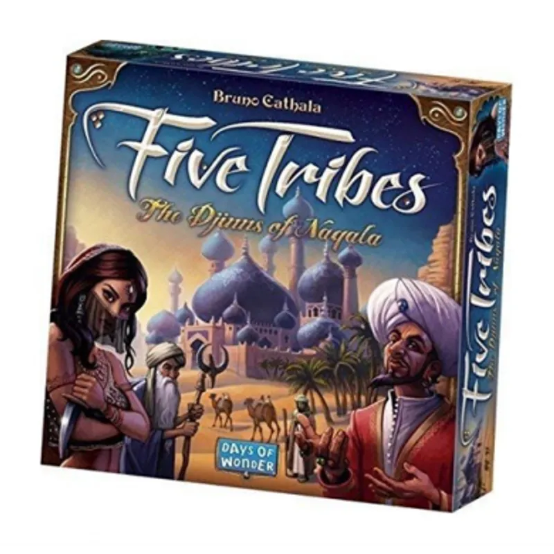 Five Tribes se zasniva na tradiciji igrara sa drvenim miplovima i postavkom radnika. Medjutim u igri su miplovi vec postavljeni na tabli i igraci moraju pazljivo da ih manevrisu kroz sela, pijace, oaze. Kako, kada i gde ih postavite odlucuje o vasoj pobedi ili porazu. Strateski isplanirajte vas potez da najvise benifituje vama i stavi vase protivnike u zamku.