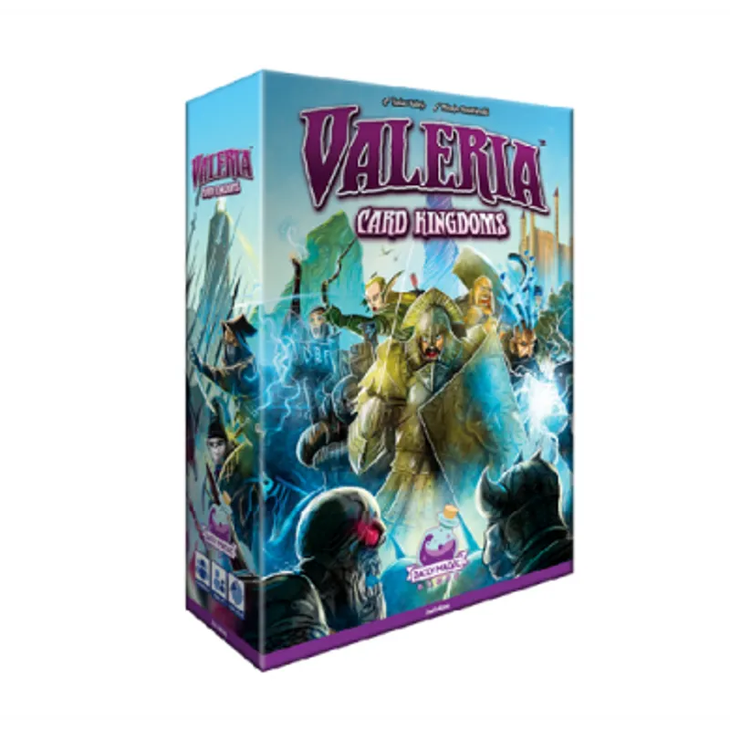 Društvena igra Valeria: Card Kingdoms stavlja vas u ulogu vojvode ili vojvotkinje koja želi da odbrani kraljevstvo i izgradi najuticajniji grad. Tokom igre ćete ubijati čudovišta, regrutovati građane i proširivati oblasti svoje zemlje. Sve ove akcije izgrađuju infrastrukturu Vašeg grada i ojačavaju uticaj Vašeg kraljevstva u vidu pobedničkih poena. Cilj igre je da postanete sledeći kralj Valerije tako što ćete imati najviše poena na kraju igre. Ali, pazite! Morate motriti na svoje kolege vojvode i vojvotkinje jer je i njima kraljevska kruna jedini cilj. Svaki igrač počinje igru sa 1 seljakom i 1 vitezom. Tokom igre Vi i Vaši prijatelji ćete bacati kockice i skupljati zlato kako biste regrutovali svoje građane. Možete birati između 10 različitih građana, ali skoro svako od njih poseduje alternativne karte sa različitim likovima i različitim efektima i sposobnostima... tako da će Vam svaka igra predstaviti različite opcije i različite izazove. Apsolutno nijedna partija koju budete odigrali neće ličiti na onu prethodnu! Kada unajmite određenu kombinaciju građana, možete kupiti razne oblasti čije benefite možete koristiti do kraja igre. Ali ne zaboravite i na čudovišta - trudite se da ih savladate što više kako biste prikupili dodatne resurse. Igra se završava odmah nakon što su sva čudovišta ubijena, ili su sve oblasti kupljene. Tada se sabiraju poeni. Ko će biti sledeći kralj Valerije?