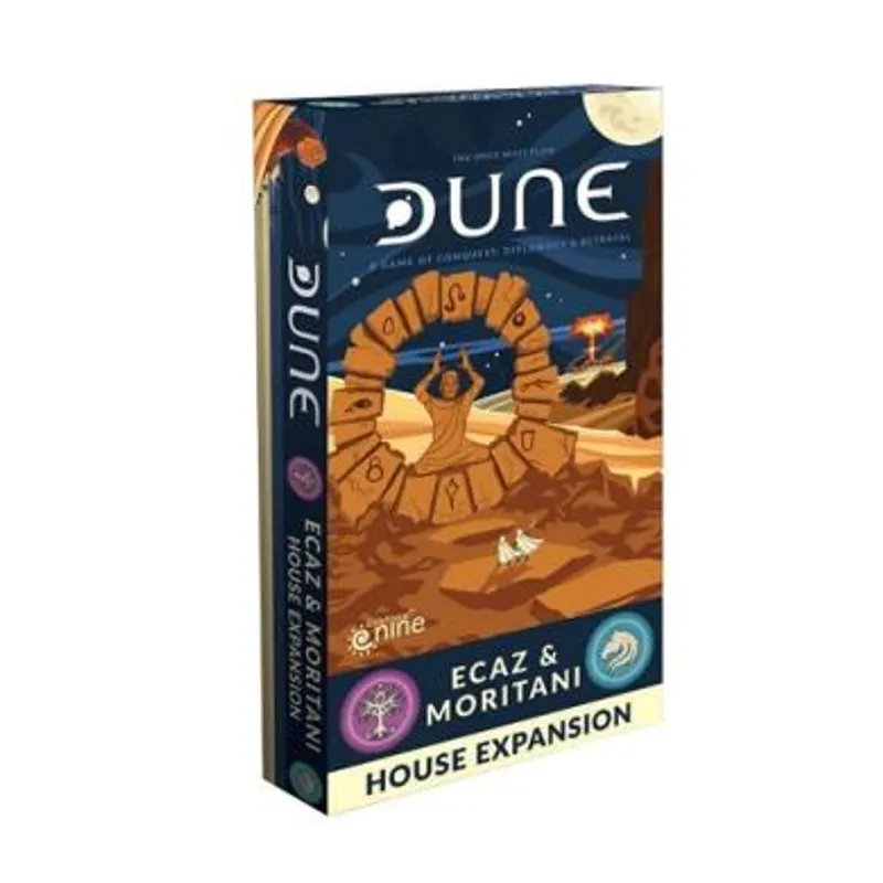 Dune Ecaz & Moritani ekspanzija za društvenu igru Dune dodaje dve nove kuće Ecaz i Moritani, sa novim spospobnostima koje će Vam obezbediti još dosta sati uživanja u ovoj društvenoj igri! Kuća Ecaz je vođena nadvojvodom Armand Ecazom, koji je cenjen u Landsraad-u i spreman da ojača svoj položaj formiranjem novih saveza. S druge strane Kuca Moritani na svom čelu ima lukavog Hundro Moritani-ja, koji ne okleva da koristi teror kako bi se dokopao vlasti i novih teritorija! Sa ovom ekspanzijom između ostalog iskusićete i nove mehanike koje do sada niste imali prilike da vidite u ovoj igri!