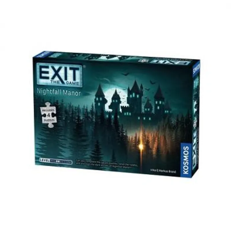 Društvena igra Exit Nightfall Manor Puzzle, vodi Vas u novu avantru sa uzbudljivim zagonetkama sakrivenim u 4 puzle od kojih svaka ima 88 delova. Kao i u ostalim Exitima, ni u ovom delu ne postoji tabla za igranje, ali takođe ovde nema ni karata zagonetki. Umesto toga, postoje puzle koje morate da sklopite, jednu po jednu. Svaka sklopljena puzla otkriva lokaciju koja sadrži još zagonetki za rešavanja! Da li ćete uspeti da rešite još jednu misteriju ili će ovo ipak biti preveliki zalogaj za Vas?