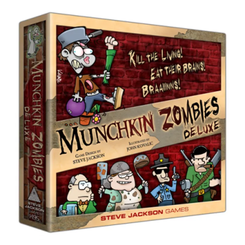 Vi ste zombi. Pojedite sve mozgove i stignite do desetog nivoa pre vasih prijatelja. Munchkin sa temom zombija ce vas smestiti u ulozi zombija koji mora da pojede sve preostale zive ljude. Pazite se motornih testera i sekira! Sa svojim prostim pravilima i smešnim dizajnom, Munchkin je brzo postala jedna od najpopularnijih karticnih igrara na svetu. Igrači su u ulozi heroja koji razbijaju vrata tamnica i suočavaju se sa preprekama na putu do desetog nivoa. Ako mislite da ne možete da pobedite ogromno čudovište, uvek možete pozvati vaše saigrače u pomoć. Međutim, drugi igrači takođe mogu da vam zabodu nož u leđa i pojačaju čudovište protiv koga se borite ili smanje vaše šanse tako što bacaju kletve na vas! Usput ćete nailaziti na blaga koja vam pomažu u borbi ili odmažu protivnicima i prvi igrač koji stigne do desetog nivoa je pobednik.
