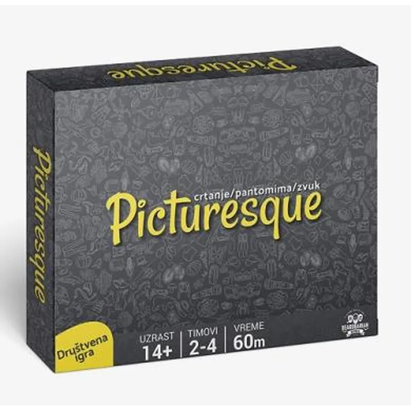 Picturesque je društvena igra koja Vas možda asocira na Pictionary, verujte nam, ne grešite. Picturesque je srpska verzija globalno poznate igre Pictionarytj.polazna osnova je ova igra ali sa malim izmenama, i to ni manje ni više nego POBOLJŠANA verzija...jer zahteva pored crtanja i pevanje i pantomimu kao i imitaciju zvuka. Naime, igra je zaista kvalitetno odrađena i prilagođena našem govornom području pri čemu je od orginalne igre pozajmila samo logiku igranja. Ostalo je sve novo i naše.