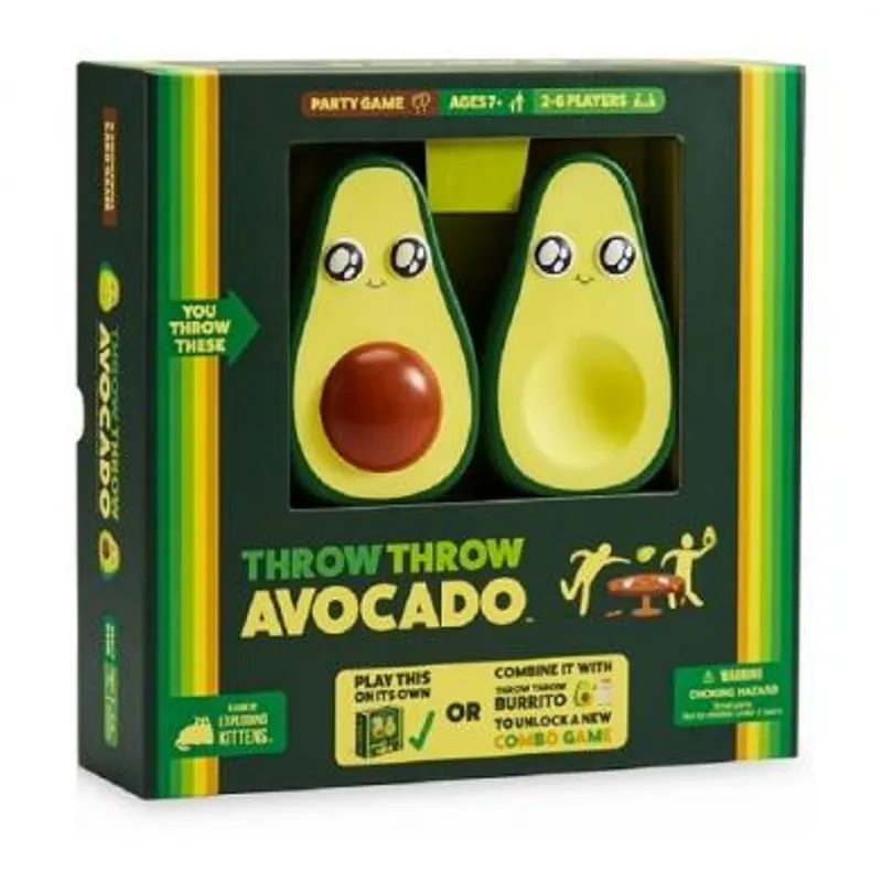 Društvena igra Throw Throw Avocado je kartična “između dve vatre” igra, nova verzija igre Throw Throw Burrito. Sakupite karte, odigrajte svoju ruku i gađajte svoje prijatelje.