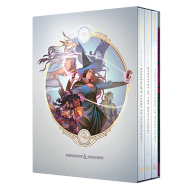Uključuje najprodavanija proširenja pravila: Xanathar’s Guide to Everything, Tasha’s Cauldron of Everything i Monsters of the Multiverse, zajedno sa Dungeon Master screenom u prelepoj tvrdokoričnoj fotroli.
