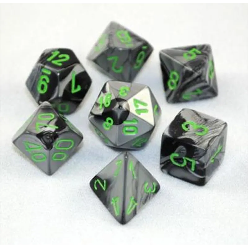 Chessex Gemini Black Grey with Green 7-Dice Set