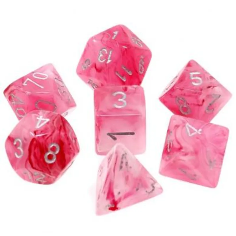 Chessex Ghostly Glow Pink with Silver 7-Dice Set