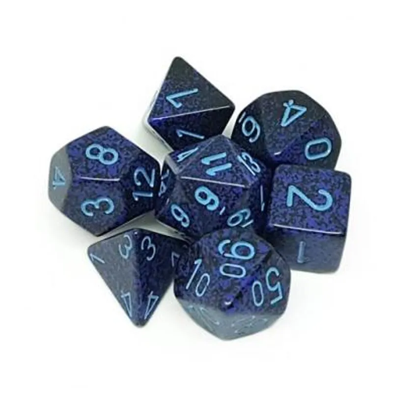 Jednu D4, jednu D6, jednu D8, jednu D10, jednu Tens 10™ (procentualna kockica), jednu D12 i jednu D20 kockicu.