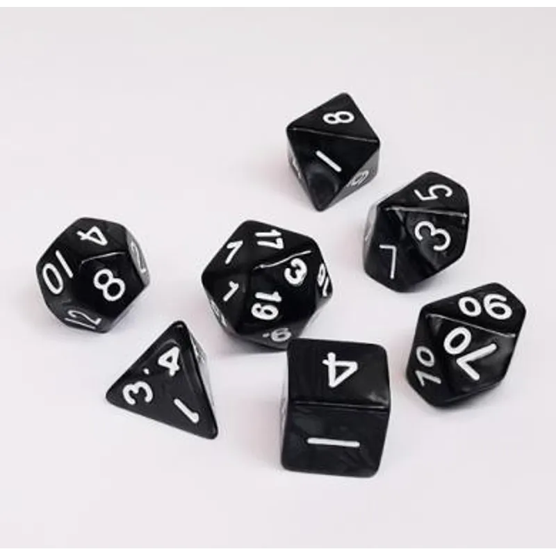 Set sadrži 7 kockica: 1xD4,1xD6,1xD8,1xD10,1xTens 10 (procentualna kockica),1xD12 i 1xD20