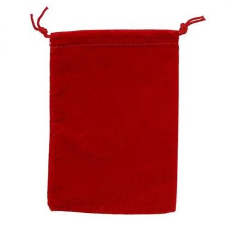 Malo veća torbica crvene boje za vaše kockice, žetone, novčiće i ostale dodatke! Broj standardnih kockica koje možete da ubacite u ovu orbicu je okvirno 70 do 80 komada. Materijal: Pliš