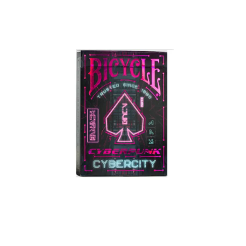 Bicycle Cyberpunk Cyber City spaja visoku tehnologiju sa urbanimn gradskim pejzažom budućnosti. Sa prilagođenim ilustracijama, ovaj špil je savršena mešavina tradicionalnih elemenata karata sa budućnošću inspirisanom naučnom fantastikom.
