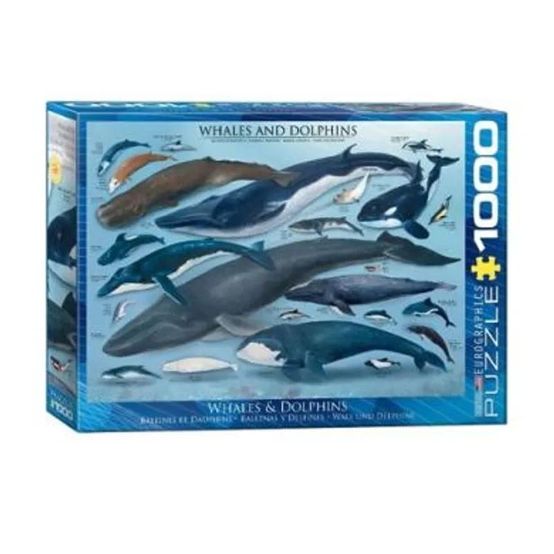 Whales & Dolphins Puzzle je slagalica od 1000 delova na kojoj se nalaze mnoge vrste delfina i kitova koje nastanjuju mora i okeane širom sveta! Sa ovom slagalicom ćete upoznati vrste poput delfina krstaša velike orce i mnogih drugi. Ukoliko ste ljubitelj ovih morskih stvorenja i ujedno uživate u rešavanju puzzli, ovo je prava puzzla za Vas!