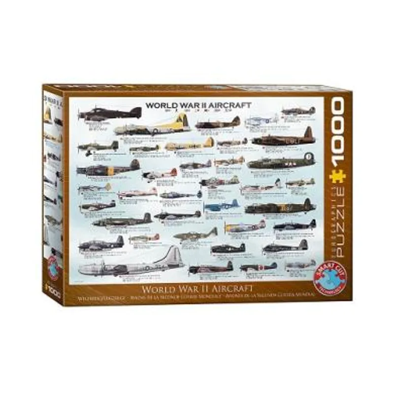 World War II Aircraft Puzzle je slagalica od 1000 delova na kojoj se nalaze najpoznatije letelice iz Drugog svetskog rata poput Messerschmitt BF-109, Hurricane, Supermarine Spitfire i mnoge druge. Ukoliko ste ljubitelj ove tematike a ujedno uživate da razvijate svoje veštine slažući puzzle, ova puzzla je prava stvar za Vas!